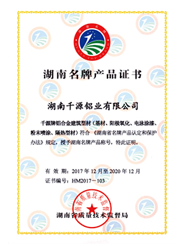 湖南名牌產(chǎn)品證書