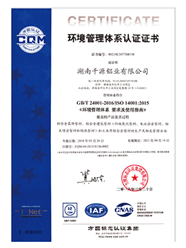 環(huán)境管理體系認證證書