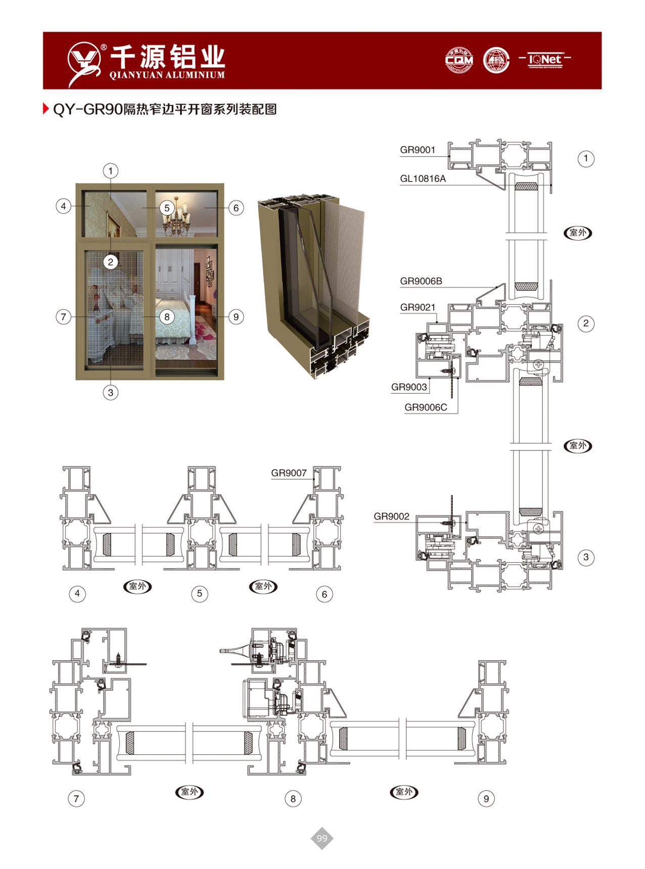 QY-GR90隔熱窄邊平開窗