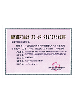 湖南建筑節(jié)能工藝材料設備推廣應用目錄證明書